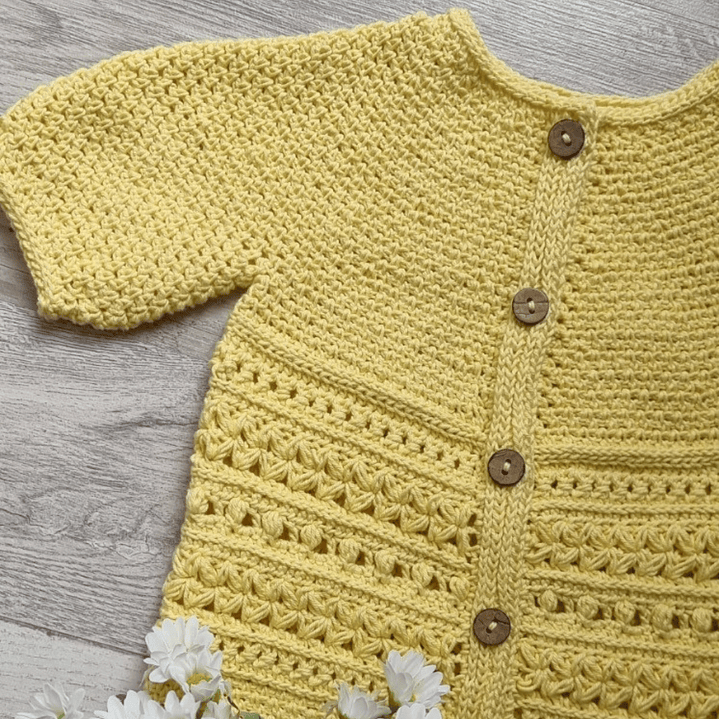 Es un proyecto sin costuras, que se teje desde el cuello hacia abajo (topdown). Sus mangas levemente abullonadas son de largo medio (hasta el codo) y el trabajo de texturas y calados es realmente adictivo.