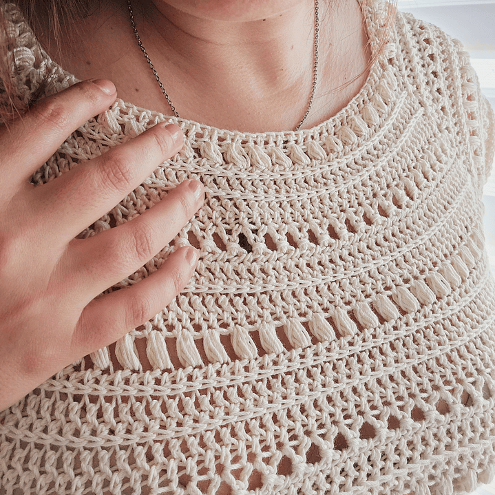 Este patrón incluye instrucciones claras, gráficos, tablas de medidas y un resumen descargable para que puedas seguir tu progreso. Personaliza tu Top con tus colores favoritos y elige entre 7 tallas diferentes. ¡Exprésate con este proyecto de crochet divertido y gratificante!